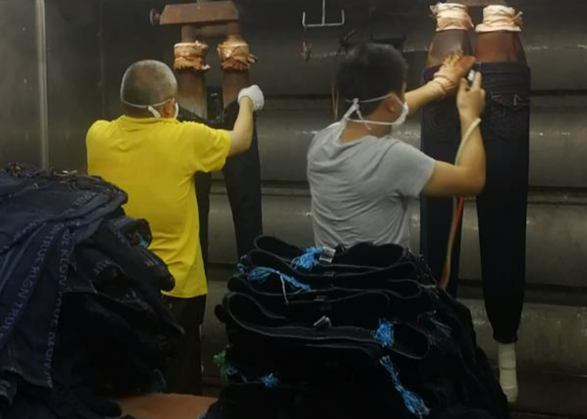 好看又時尚的牛仔褲是現(xiàn)在非常流行受歡迎的服裝,牛仔褲的需求一直居高不下,但是牛仔褲的制作工藝中需要進行噴涂上色。傳統(tǒng)的牛仔褲噴涂采用人工方式進行,通過過人工手持噴槍對牛仔褲進行噴涂,操作人員長時間從事這樣的工作難免會吸入大量的涂料導(dǎo)致身體受到損害,造成不必要的損失。