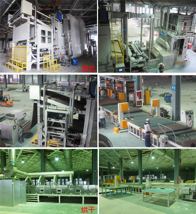 床墊自動(dòng)噴膠工程:兩涂?jī)煽?br />工藝流程:棕絲成片— 正面噴膠— 自動(dòng)翻面— 背面噴膠— 烘干— 裁剪— 硫化—粘接— 烘干